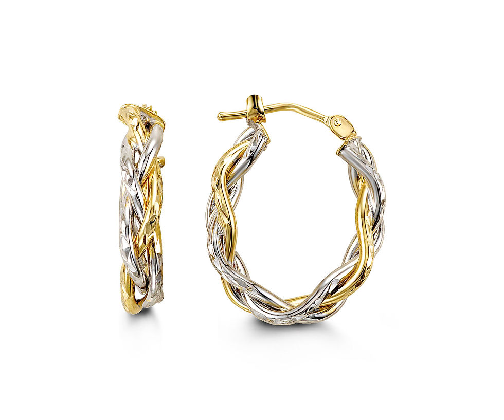 Boucles d'oreilles or 10k deux tons anneaux tressés